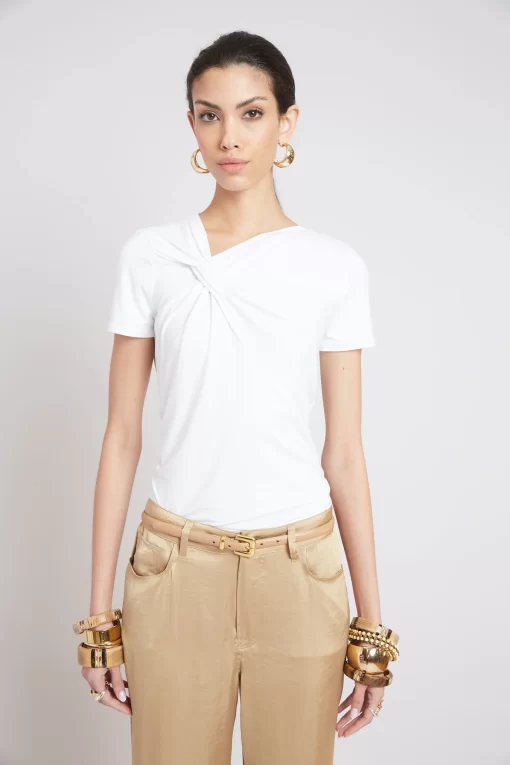 Elie Tahari Women’s Asymmetric Knot T-shirt | White