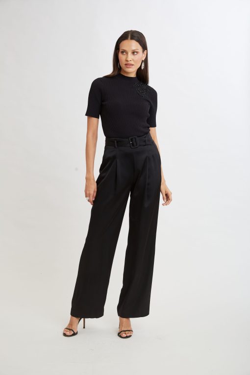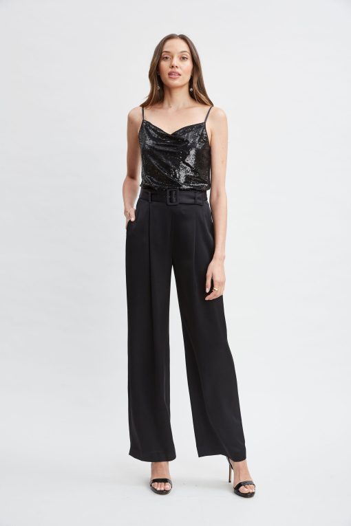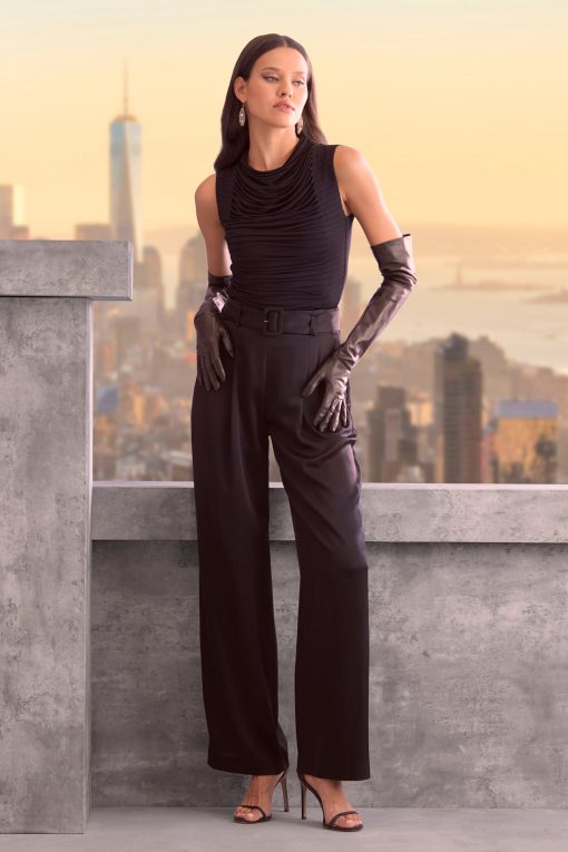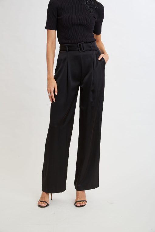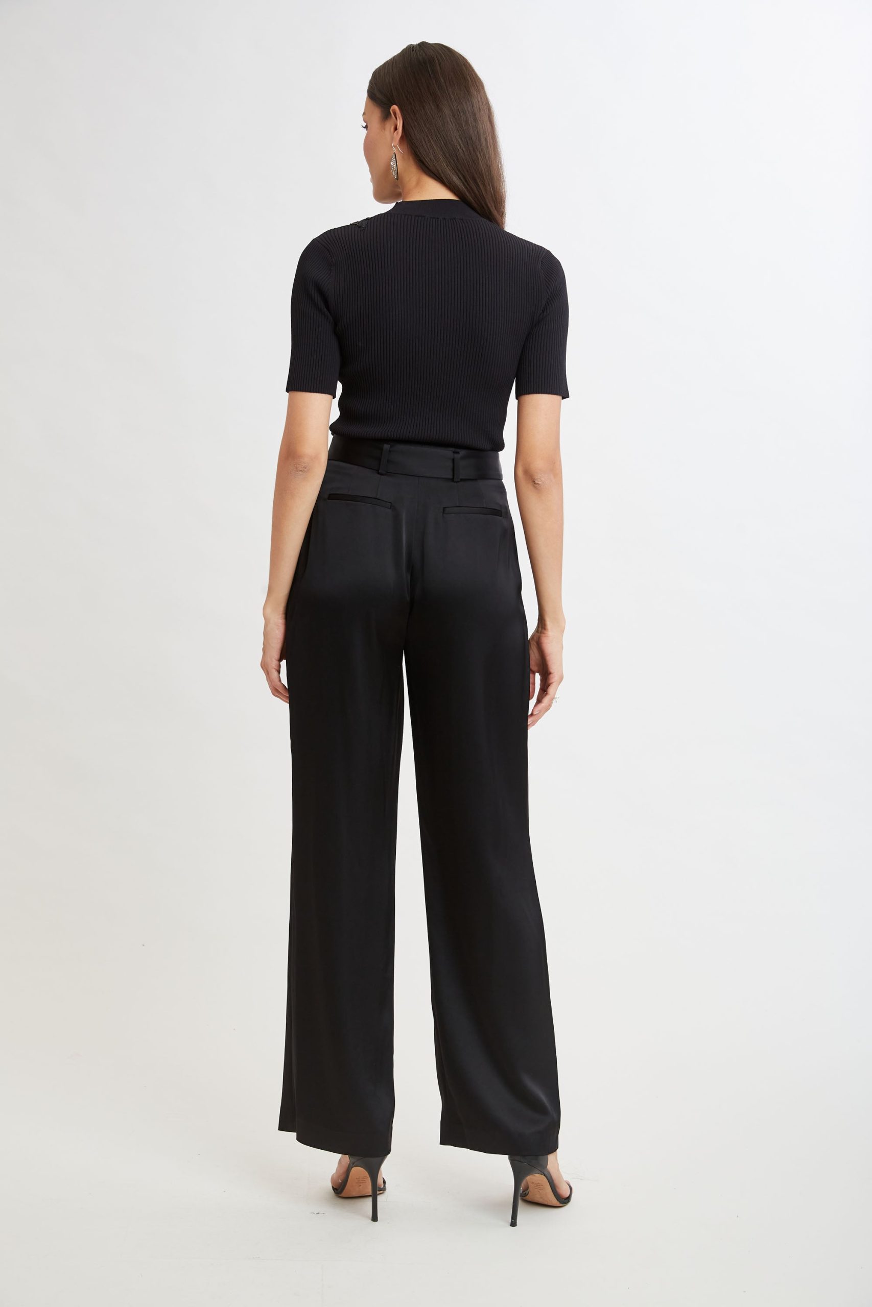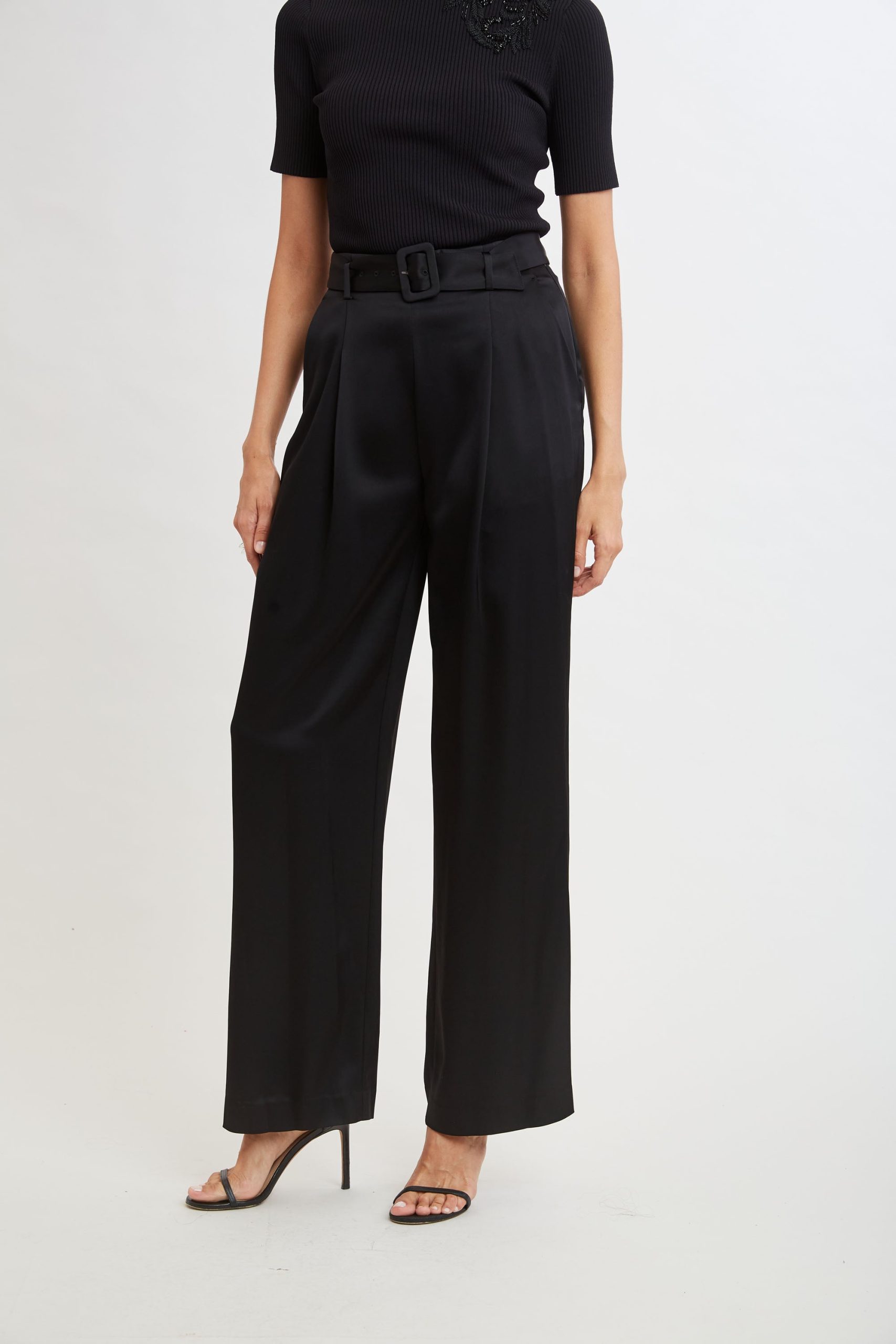 Slip into our Satin Pleated Pants. With front pleats and a removable satin belt, the unique patina and meticulous fit make these pants a standout. Pair them with our Satin Draped neck top or Matte Jersey Knit for a monotone column of refined style.
