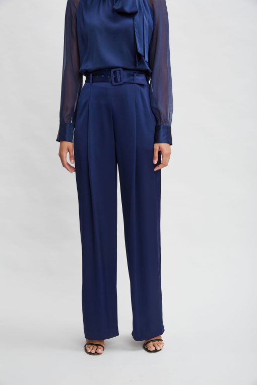 Satin Wide Leg Pleated Pant with Self Belt