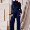 Slip into our Satin Pleated Pants. With front pleats and a removable satin belt, the unique patina and meticulous fit make these pants a standout. Pair them with our Satin Draped neck top or Matte Jersey Knit for a monotone column of refined style.