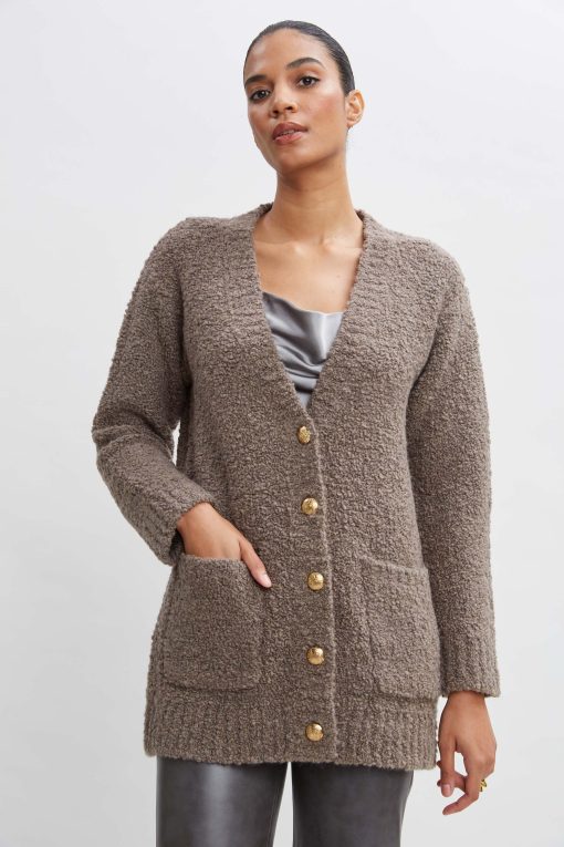 Merino Wool Boucle Oversized Cardigan with Crest Buttons