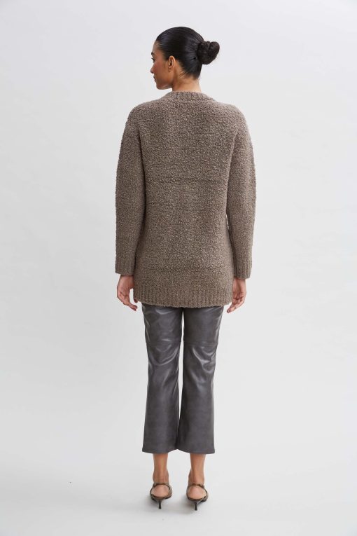 We’re obsessed with this chunky cardigan for Fall. Designed in ultra-soft Boucle merino, the rich texture & relaxed fit make this a must-have in your Fall wardrobe. Versatile & ultra-cool with its deep V-neck & crest buttons, you will love the feel & look of this cardigan for work or weekend.