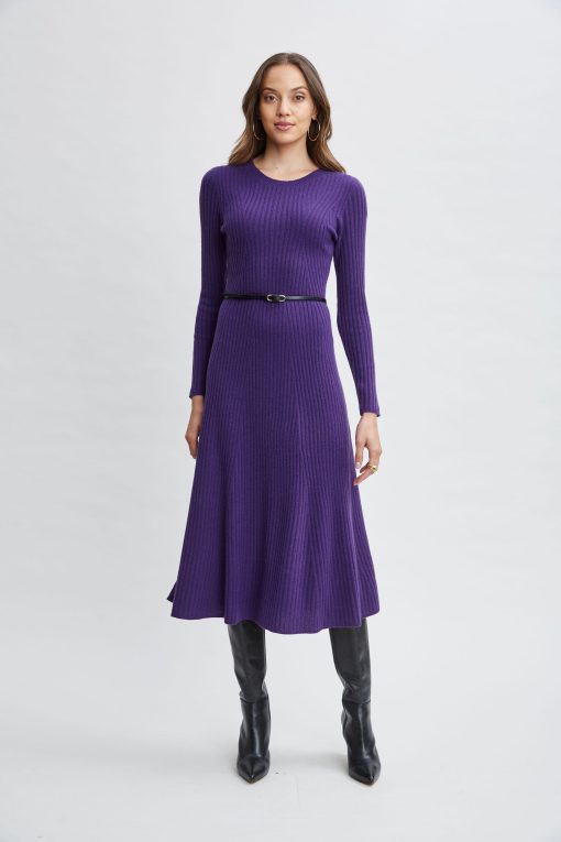 Elie Tahari Women’s Cashmere Long Sleeve Belted Dress | Horizon Purple