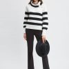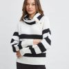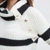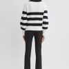 Graphic & sporty chic, our cashmere Sweater features horizontal stripes & an oversized turtleneck collar that’s detailed with crest buttons.