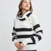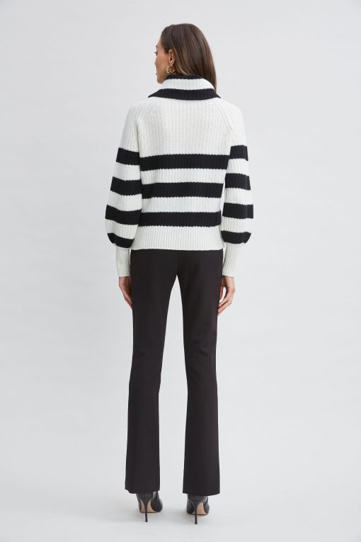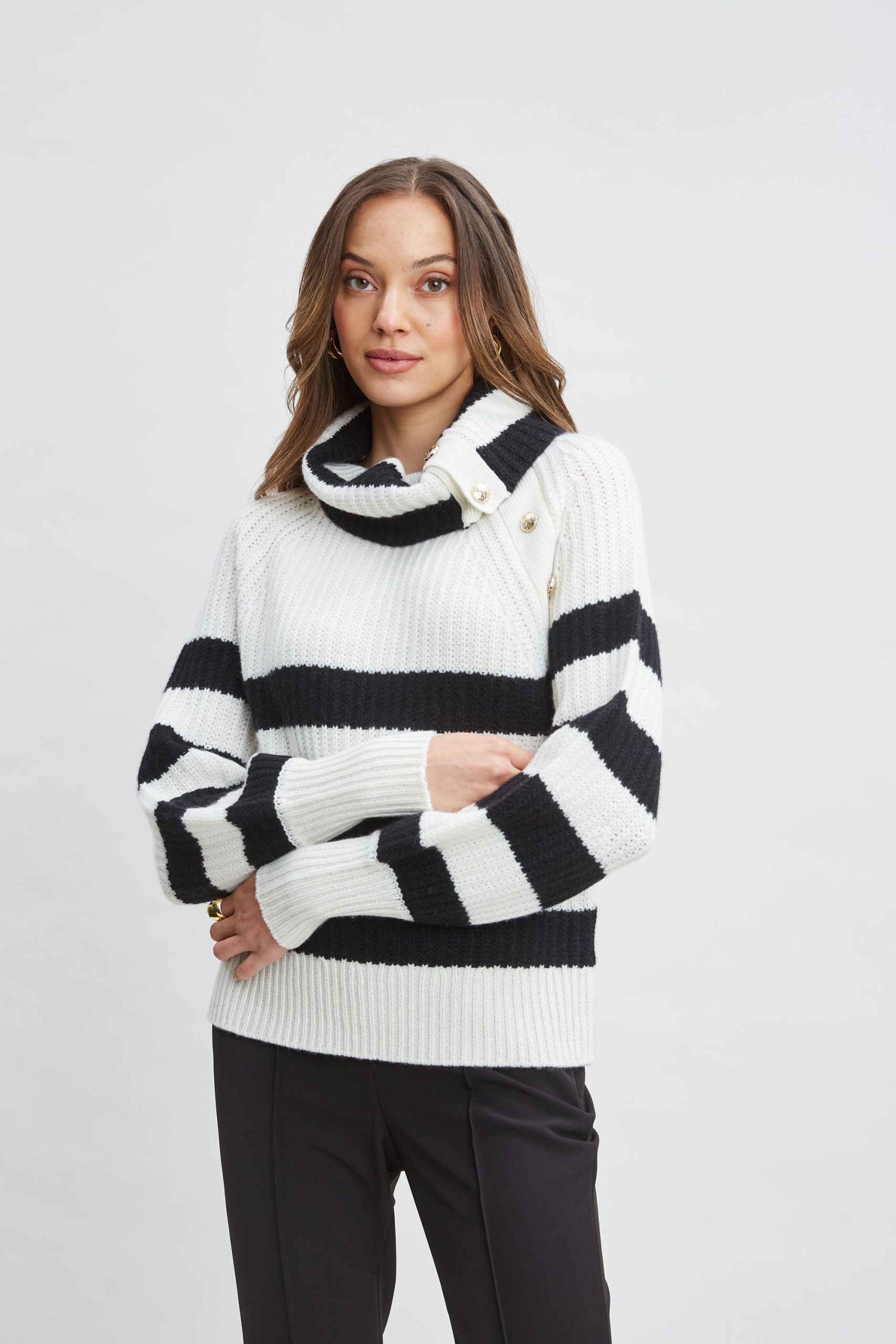 Long Sleeve Cashmere Stripe Sweater with Turtleneck & Button Detailing