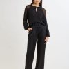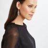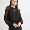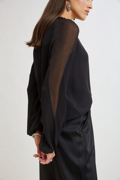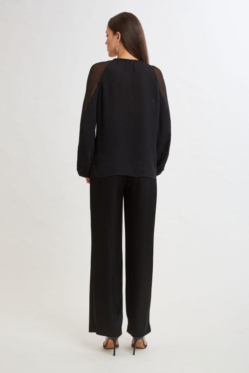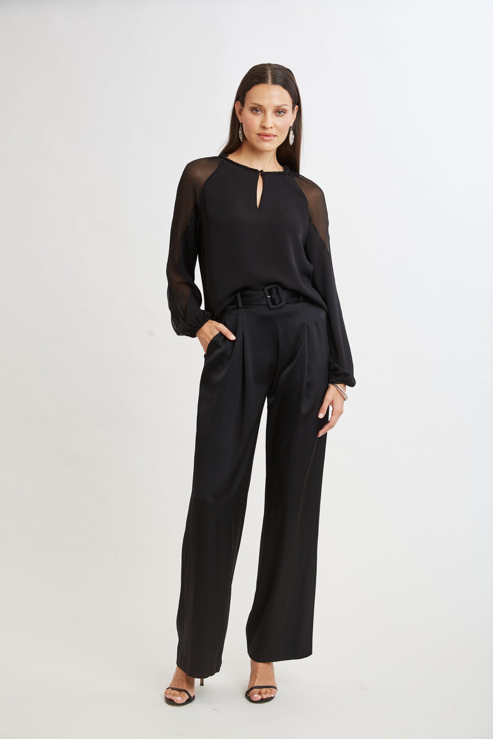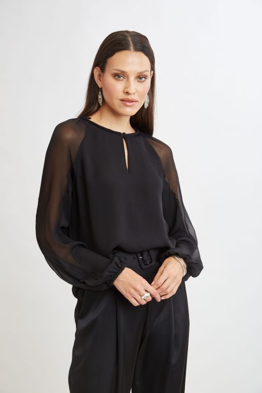 Silk Georgette Long Sleeve Shirt with Sheer Sleeves & Keyhole Neckline