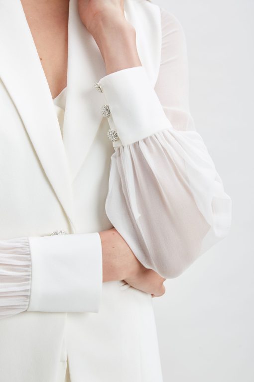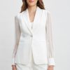 Elie Tahari Women’s Chiffon Sleeve Jewel Button Blazer | Foam