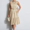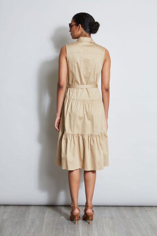 Our favorite stretch Cotton Poplin has the Luxe Patina and comfort we wanted for the season’s must have midi dress. Infused with a utility vibe with its sporty patch pockets and self-sash, it has the cool factor. The standout crest buttons & tiered skirt give our Utility Dress the designer edge.