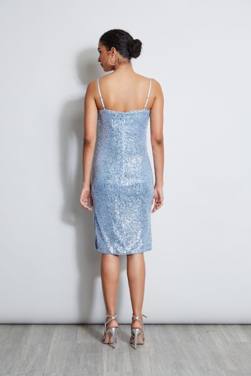 Our Sequin Dress has the”IT ” factor. Figure skimming, sexy & decidedly cool, it features a draped cowl neckline. You’ll love how this dress makes you feel. Its chic minimalist design makes it the perfect occasion dress.