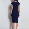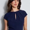 Modern architecture was the inspiration for this sleek body skimming dress in Elie’s favorite Fluid Crepe. The keyhole cut-out and subtle pleat detailing on the neck give it a designer edge – whether for day or a night out.