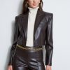 Meet the next”it ” blazer. Cropped, bold shouldered, with stacked buttons sleeve detail, it has the ultimate cool factor! Designed in our Luxe Vegan Leather, Elie loves it paired as a suit with its matching vegan leather pant or skirt or as a great item jacket throughout your wardrobe.