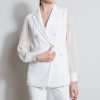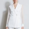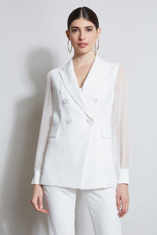 Double Breasted Blazer with Silk Chiffon Sleeves & Rib Cuffs