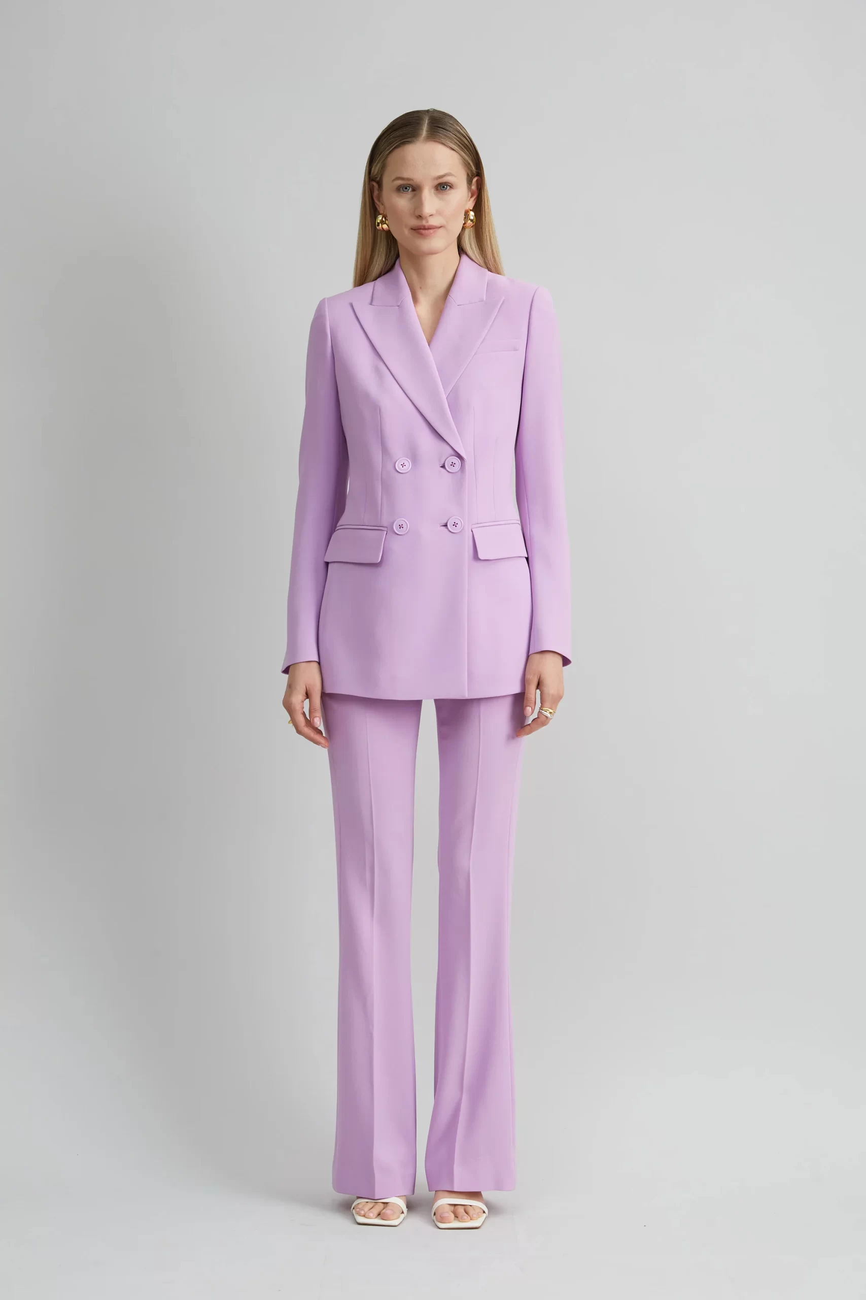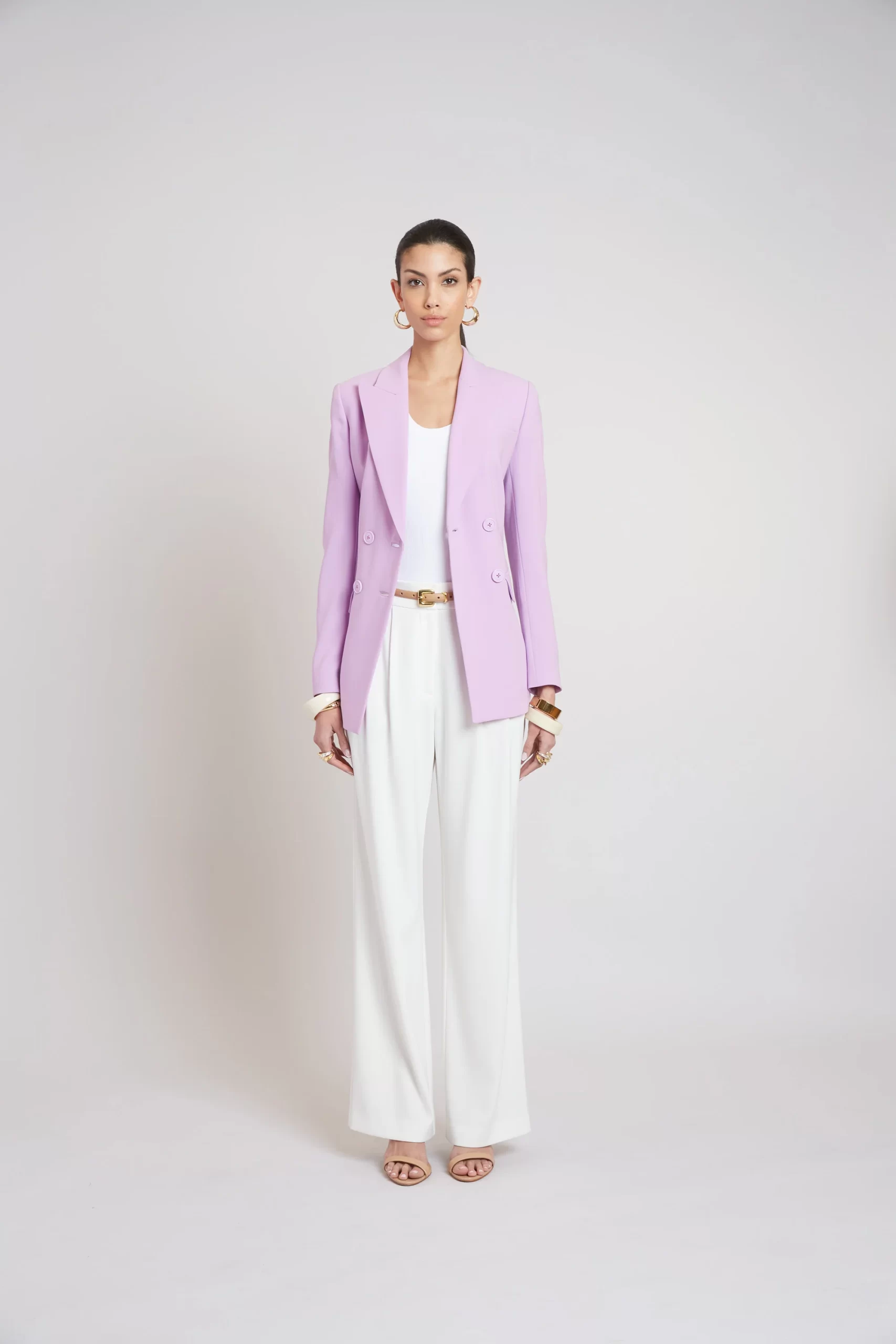 Impeccable craftsmanship and immaculate fabric are the foundation of our Double Breasted Blazer. Inspired by classic men’s tailoring, it’s expertly cut in a sharp double-breasted silhouette from our signature fluid crepe. Style it with our Fit & Flare pant or pleated pant.