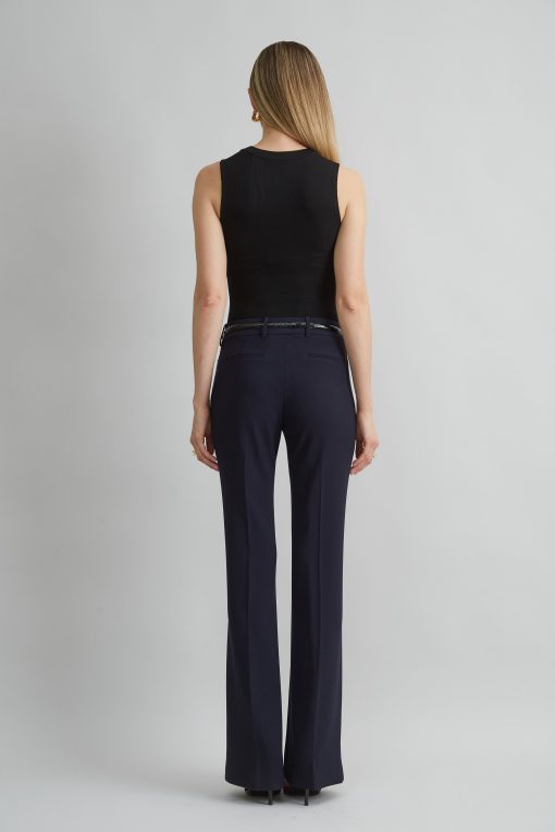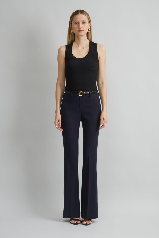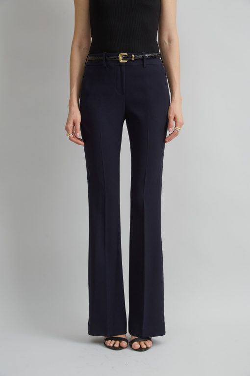 Fit & Flare tailored dress pant in Fluid Crepe with front zip closure & belt loops