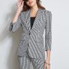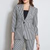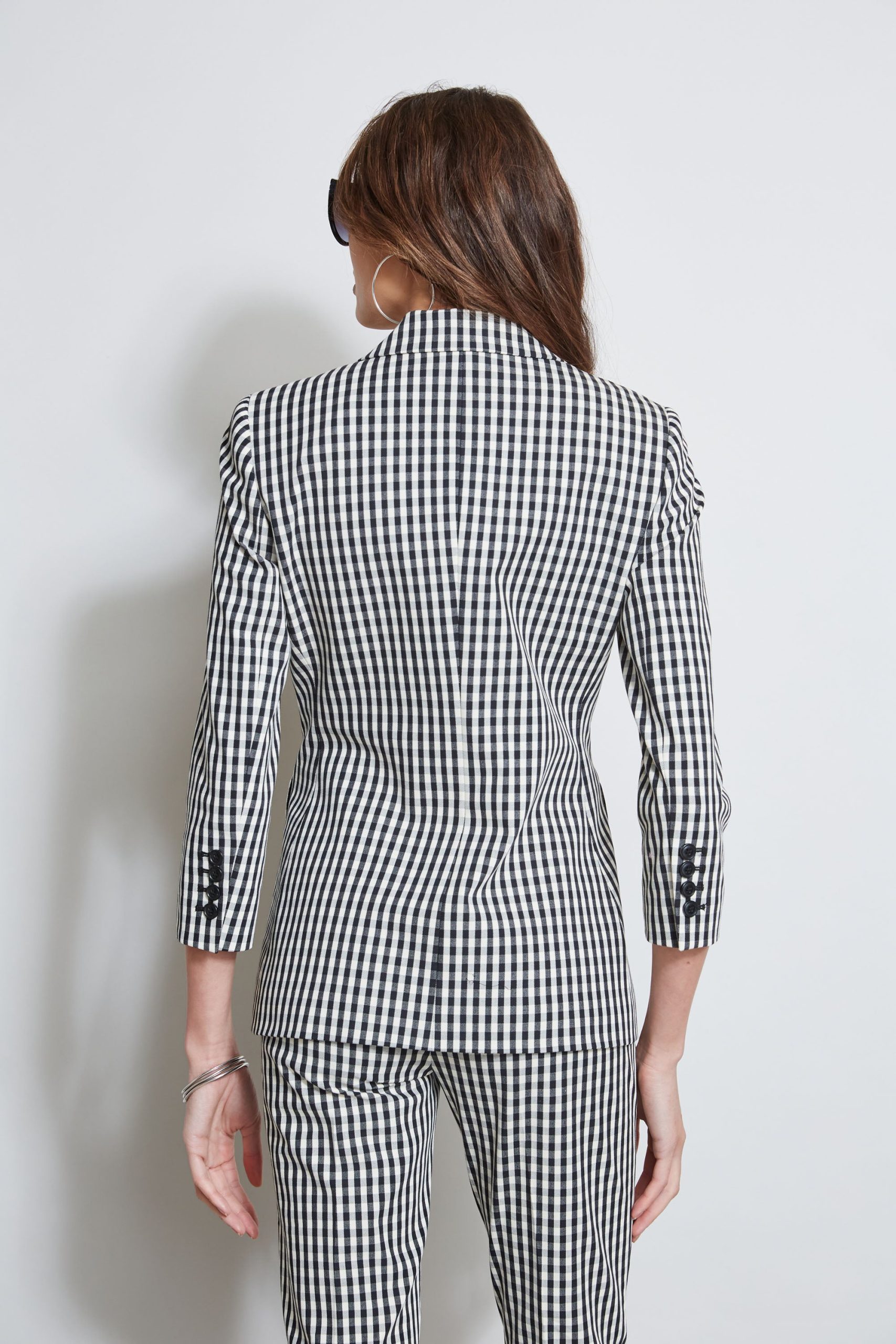 Trend Alert! Meet the season ‘s must have Gingham Jacket. We love the modern retro vibe of this sophisticated stretch Gingham in our 3/4 Sleeve Single Button Jacket. Pair it with its matching gingham pant, dress pants or mix it up with denim for an easy cool vibe.