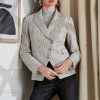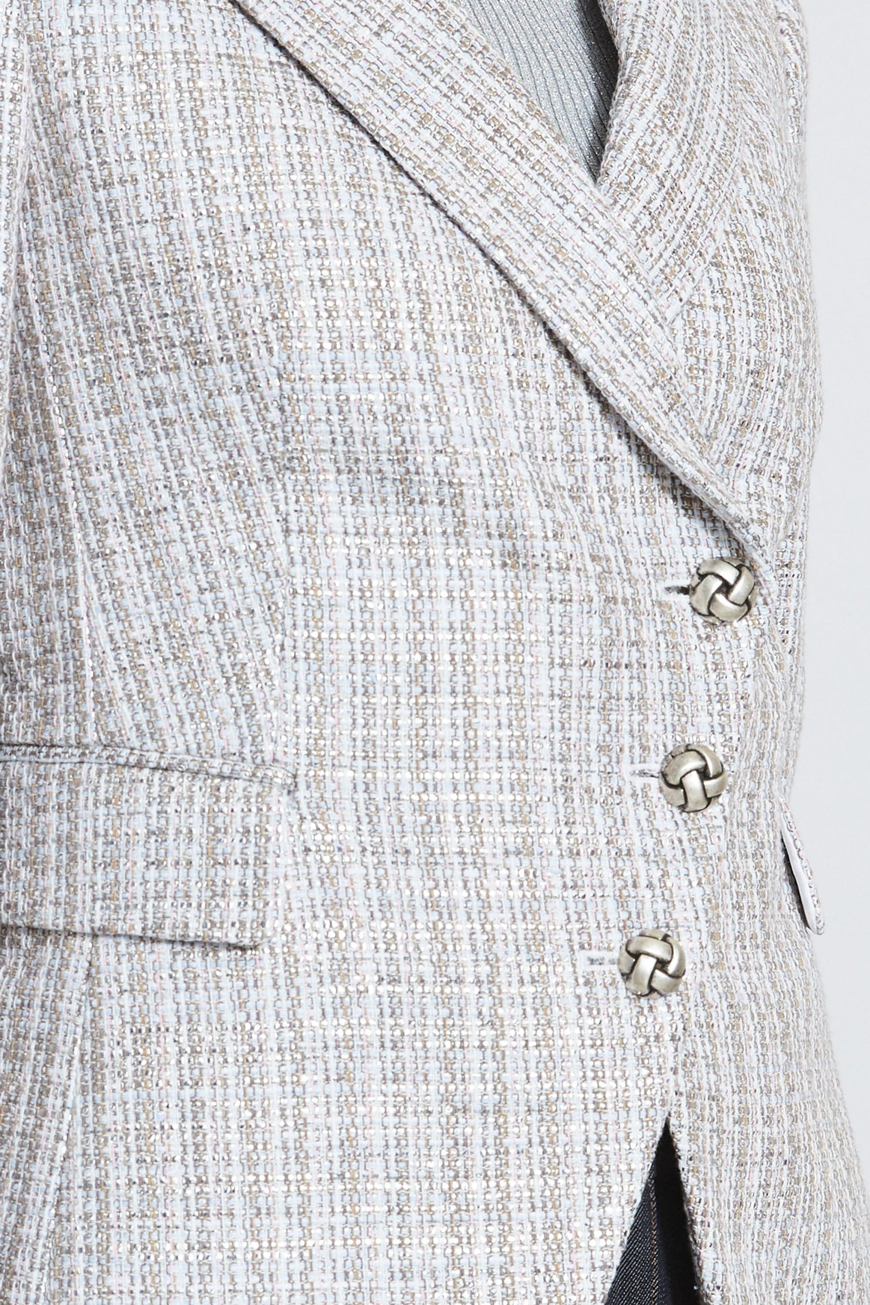 Three Button Asymmetrical Double Breasted Italian Metallic Kissed Tweed Blazer