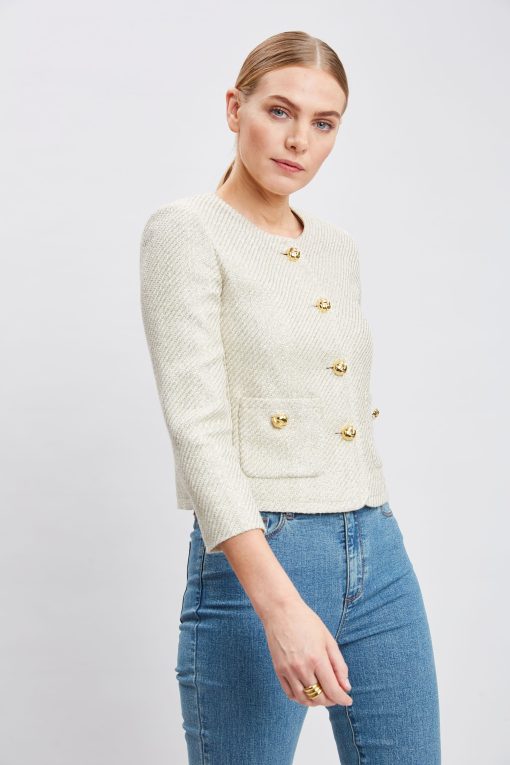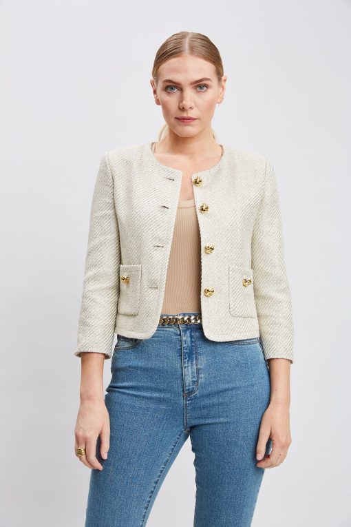 Textured Italian Tweed Cropped Jacket with Crest Buttons