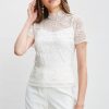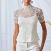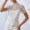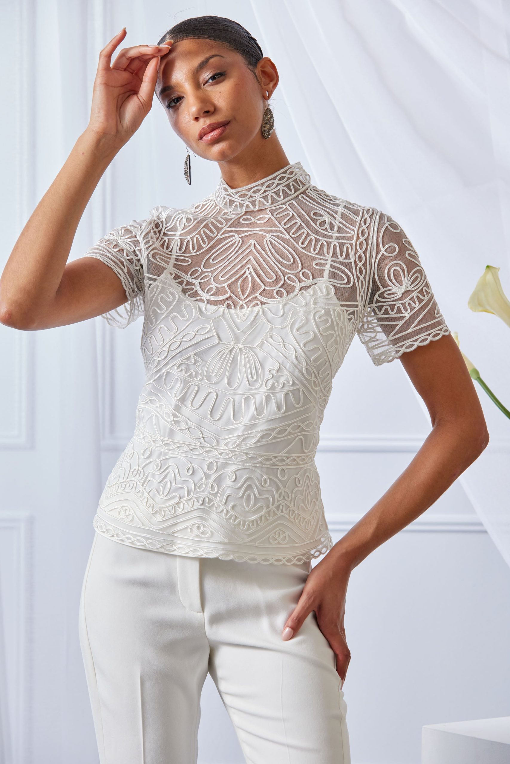 Geometric Tape Applique Short Sleeve Mock Neck Shirt