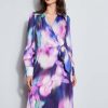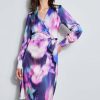 Silk Satin Long Sleeve Moire Floral Print Wrap Dress