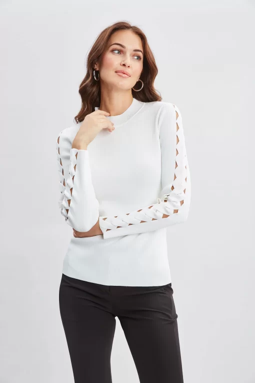Elie Tahari Women’s Openwork Sleeve Sweater | Pearl