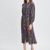 Abstract Print Long Sleeve Midi Dress with Pleat Details
