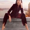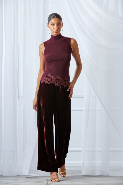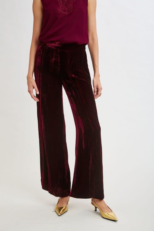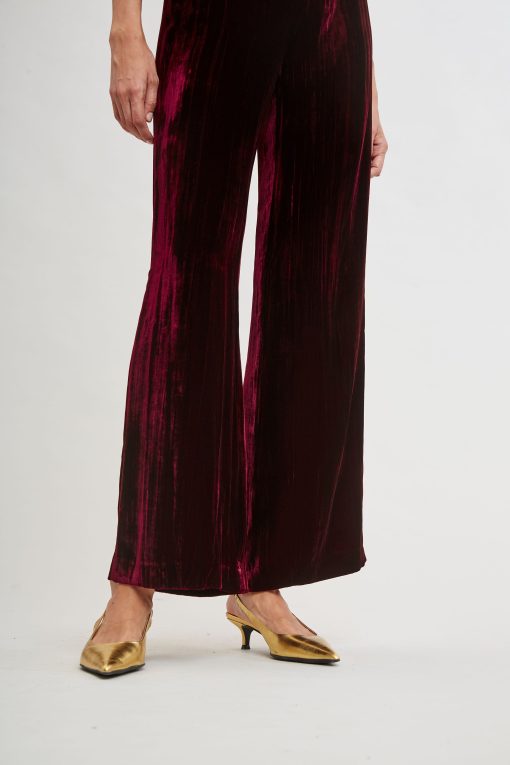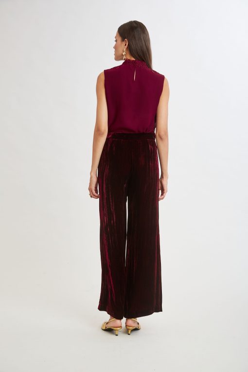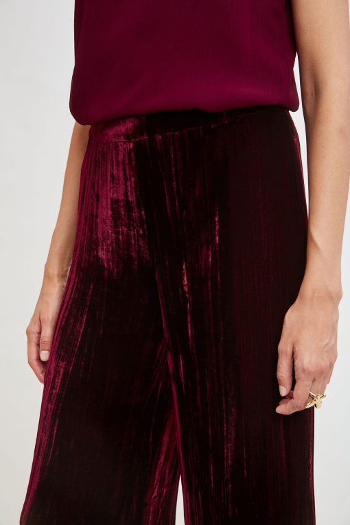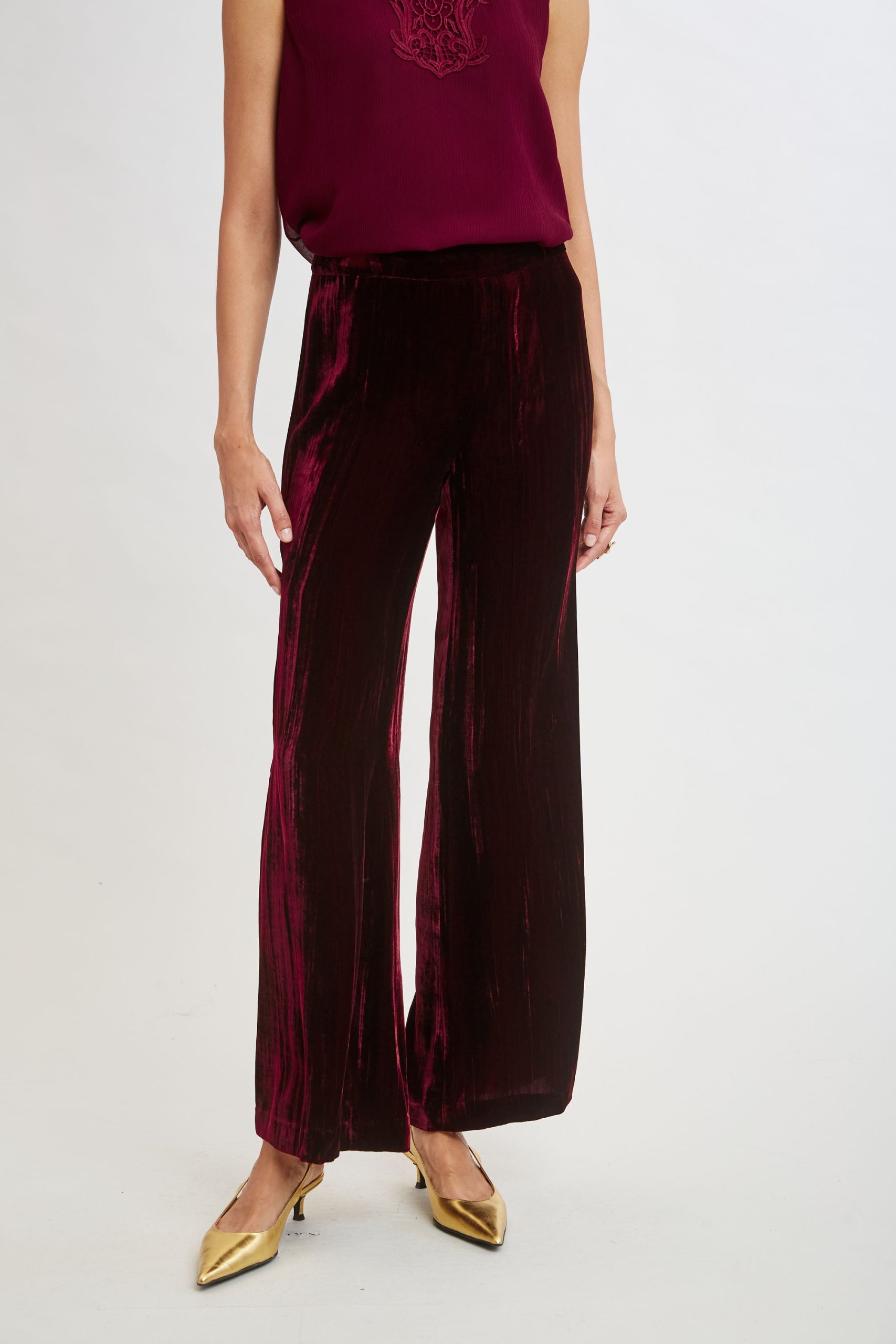 Indulge in the luxury of Elie’s Plisse Velvet Fluid Wide Leg Pant. Pair them with its matching velvet jacket for a dramatic column of texture and patina or with matte jersey or cashmere.