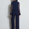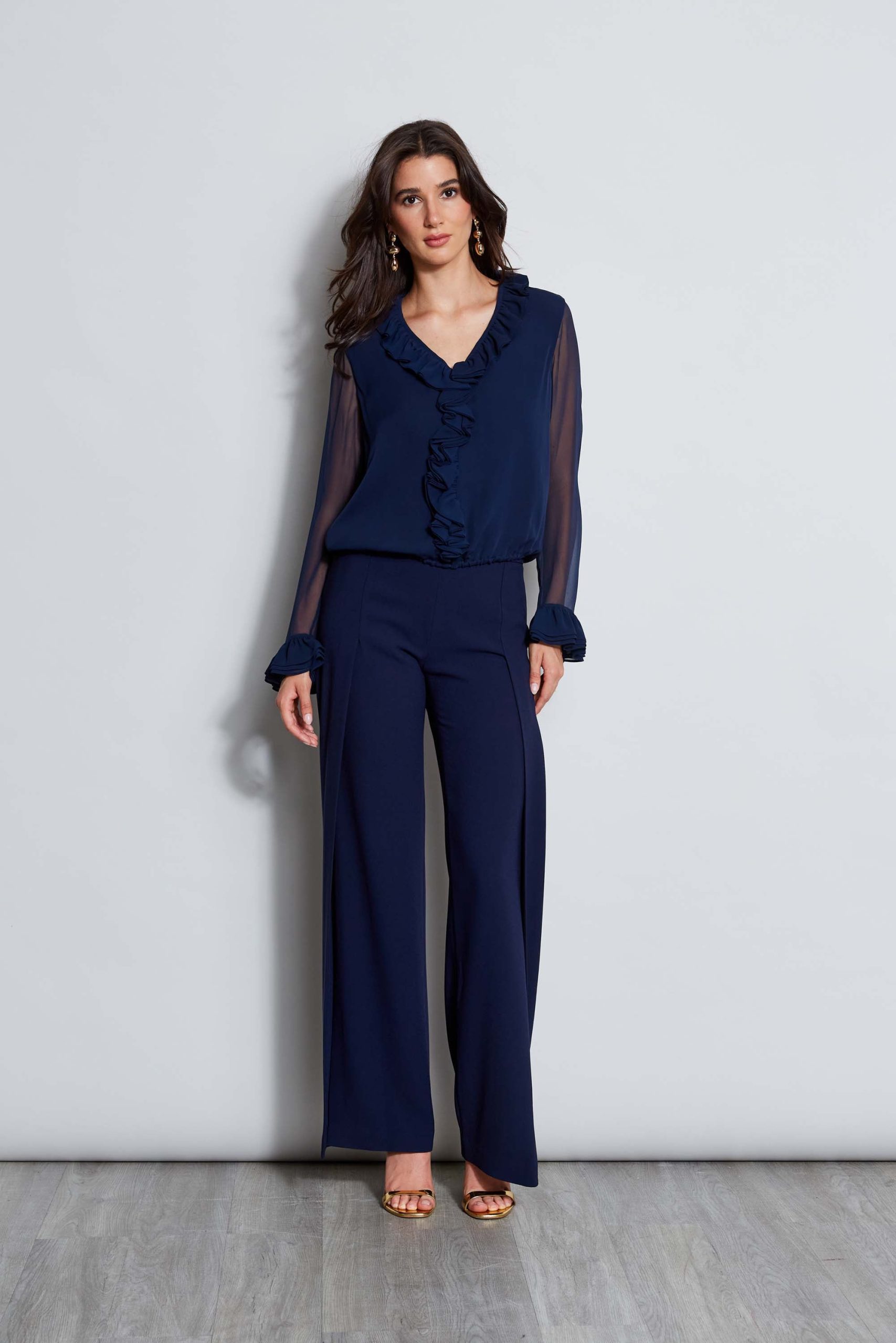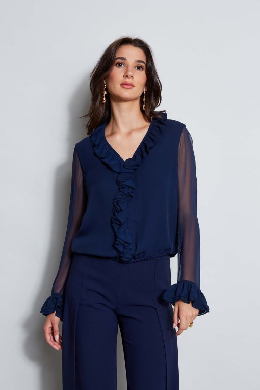 Long Sleeve Silk Ruffle Top with Chiffon Sleeves