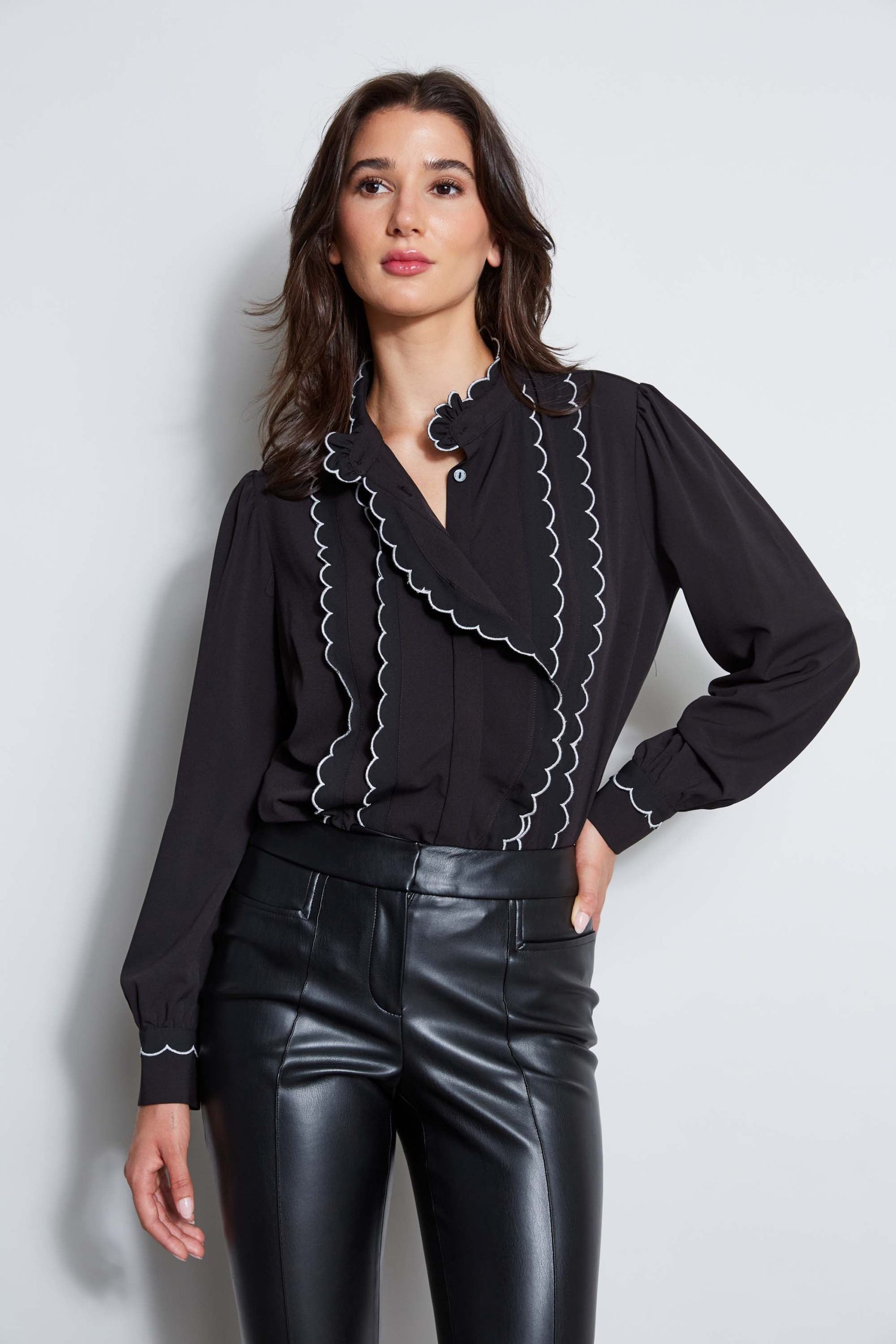 Elie Tahari Women’s Scallop Button Down Shirt | Noir