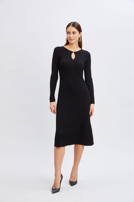 A knit sweater dress with a designer attitude. Our midi cutout dress is the definition of modern cool. With a keyhole neckline & long sleeves, our A-line sweater dress features scalloped trim that creates a standout cutout detail. This sweater dress proves that sophistication and comfort can co-exist.
