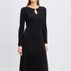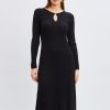 Long Sleeve Mock Neck Dress with Keyhole Cut Out Detail