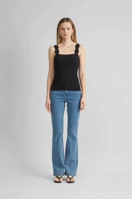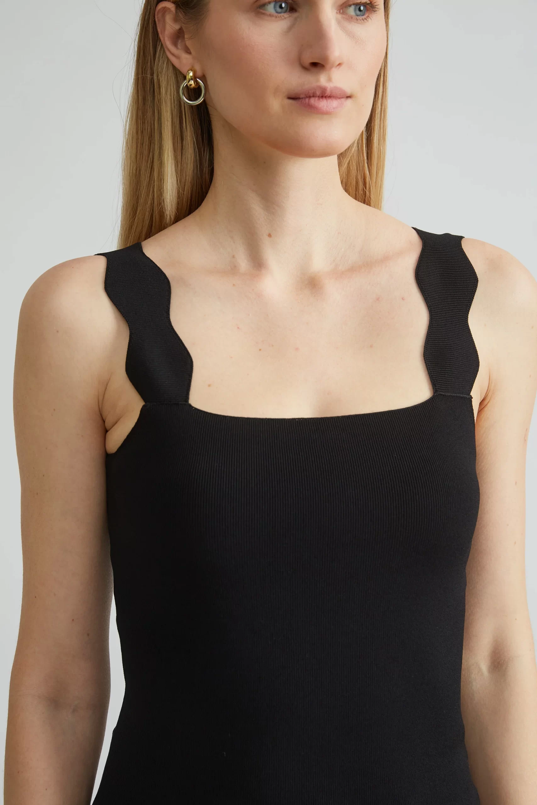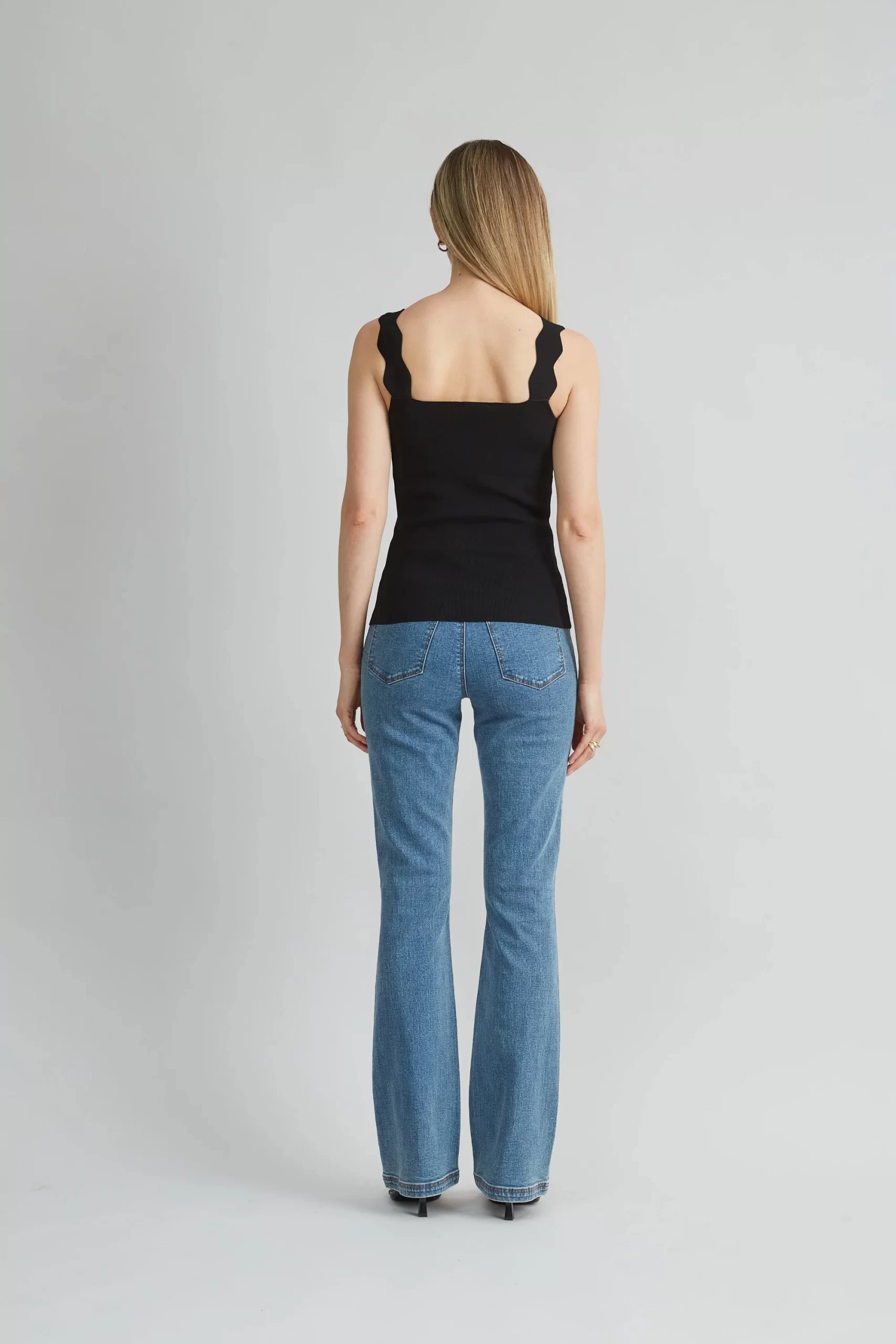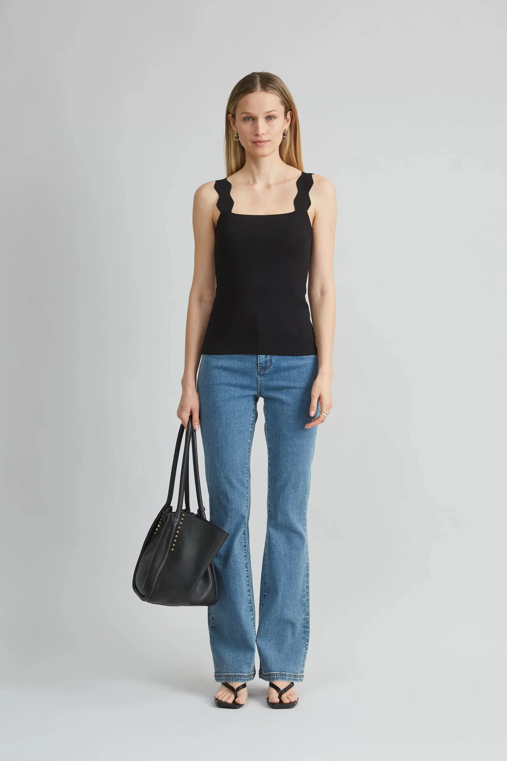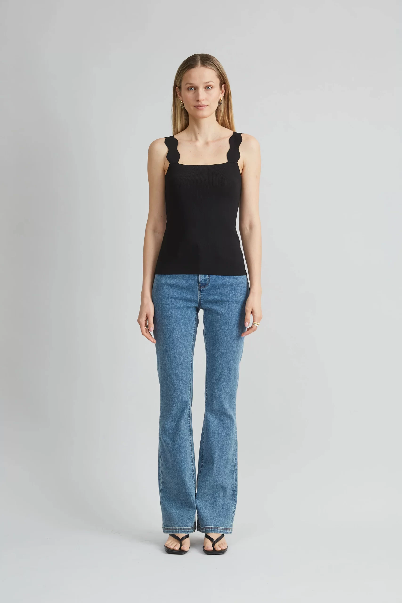 Square Neck Sweater Tank with Scallop Sleeve Detail
