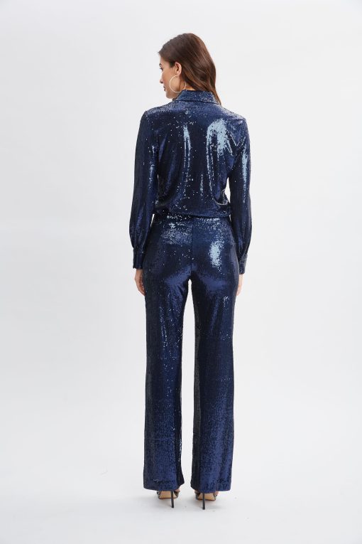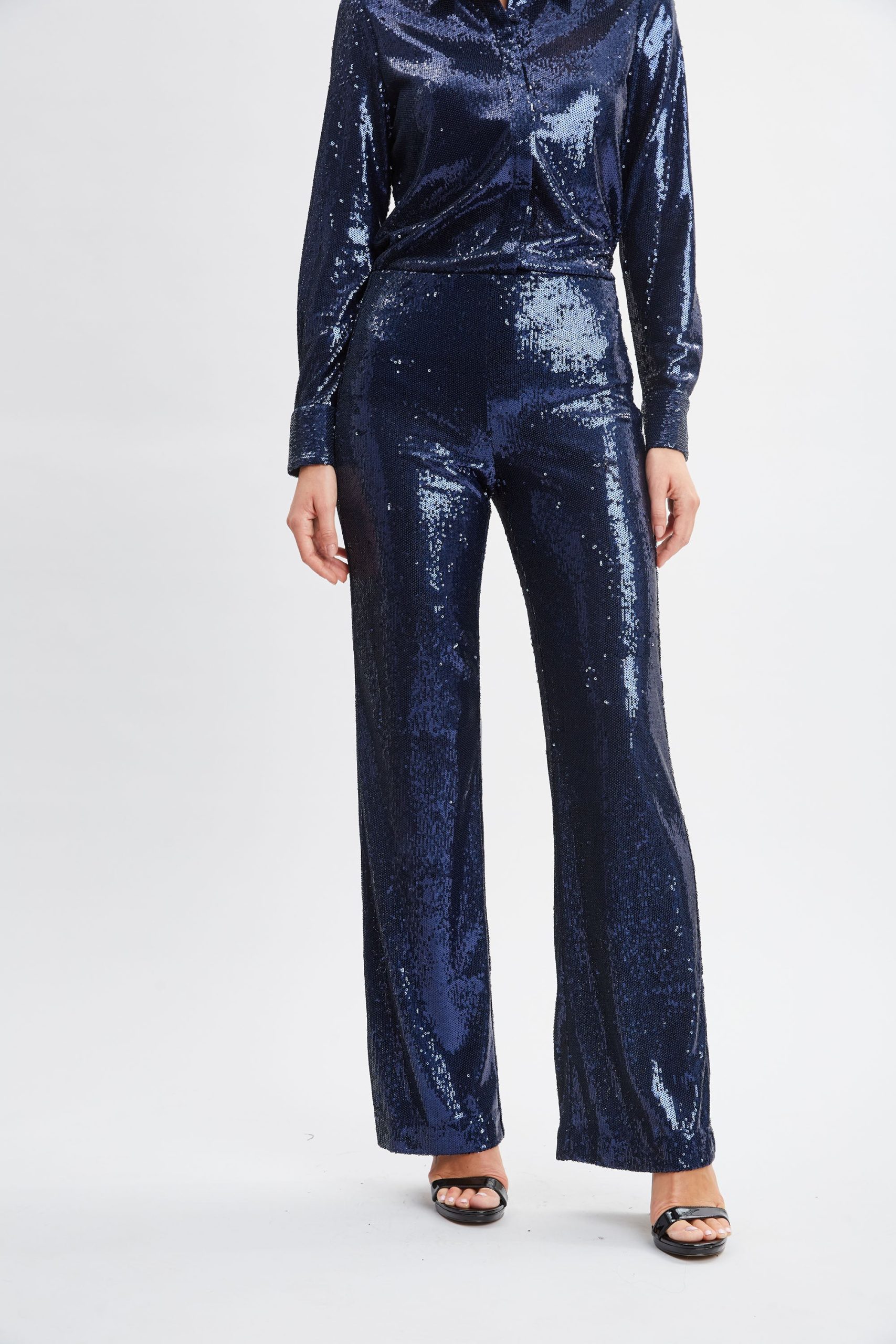 These will be the glam pants you can’t get out of your head. These eye-catching, pull-on wide leg pants are cut from Pave Sequin Jersey. Wear them with a Silk top and our jewel button cardigan or pair them with its matching button down for a statement-making look.