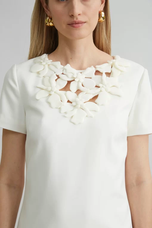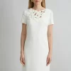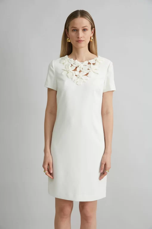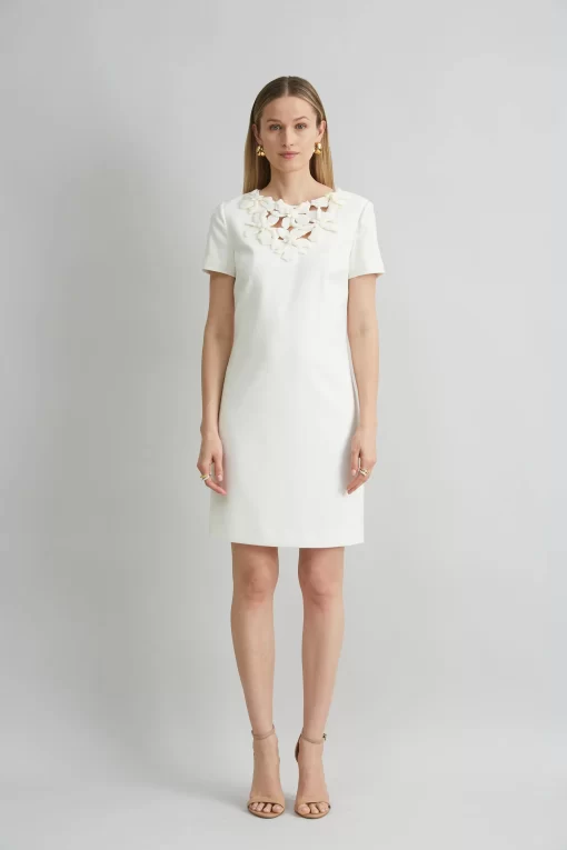 Elie Tahari Women’s Short Sleeve Flower Applique Dress | Foam