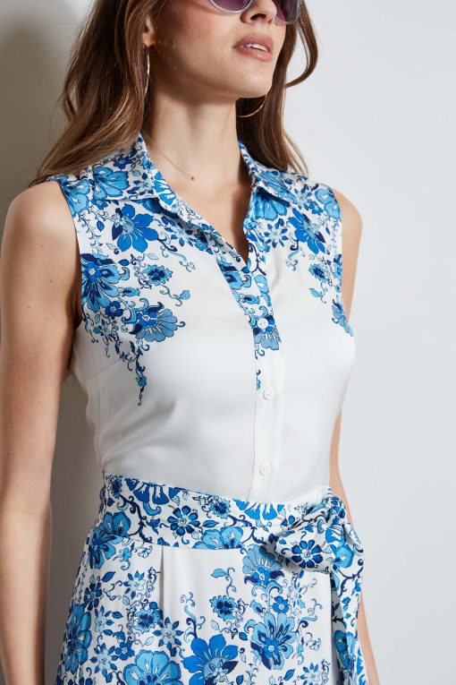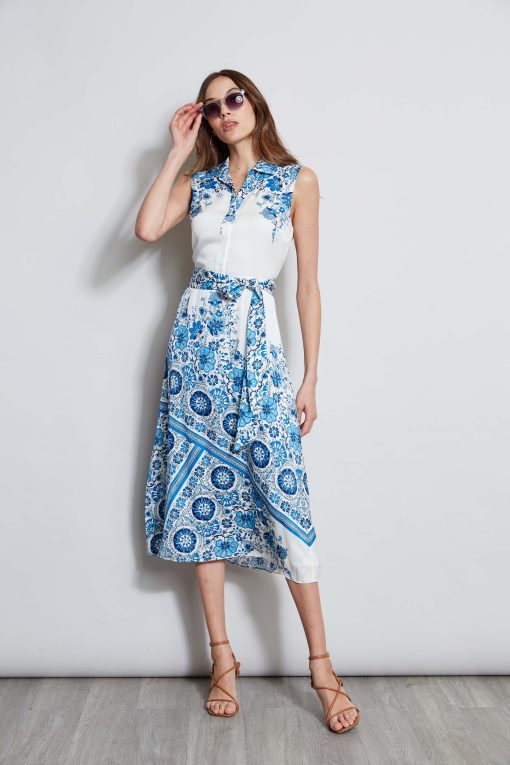 Our Cascade Garden Scarf Print is a sophisticated mix of color and artistry. Bold and chic, this shirt dress has the wow factor. Designed with a shirt collar & a self sash – let it take you from desk to dinner.