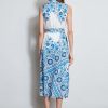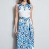 Silk Cascade Garden Floral Scarf Print Midi Shirt Dress with Self Sash