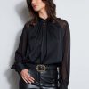 Elie Tahari Women’s Silk Twist Keyhole Shirt | Noir