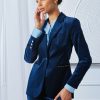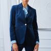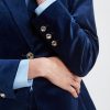 Borrowed from the boys but totally femme, our stretch Velvet Blazer is a must have. Sharp tailoring meets the lush touch and patina of velvet in our peaked lapel One Button Blazer. Designed with gold pocket detailing & button closure, think of velvet for day and night and mix it with denim, vegan leather and satin 24/7.
