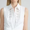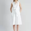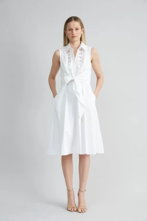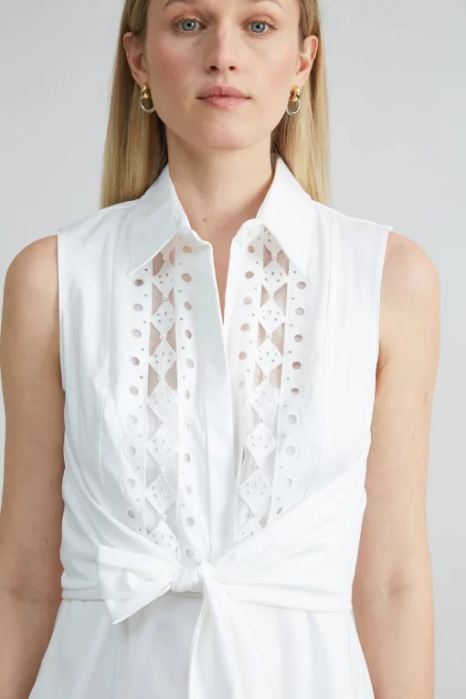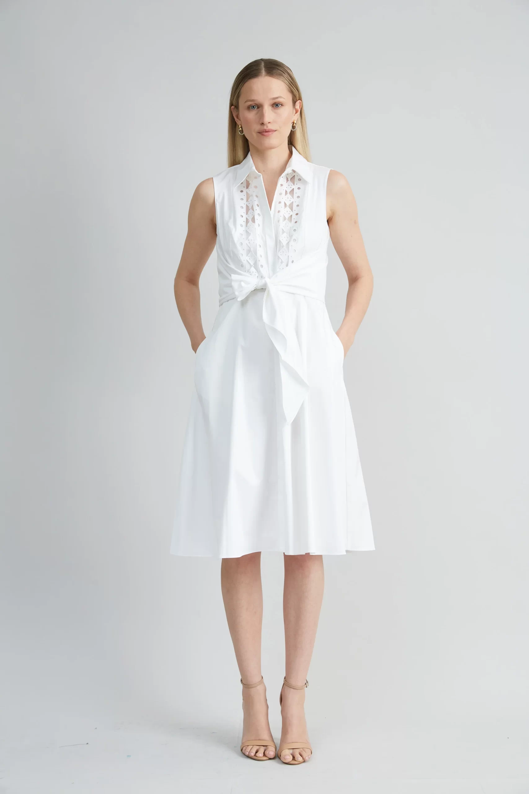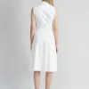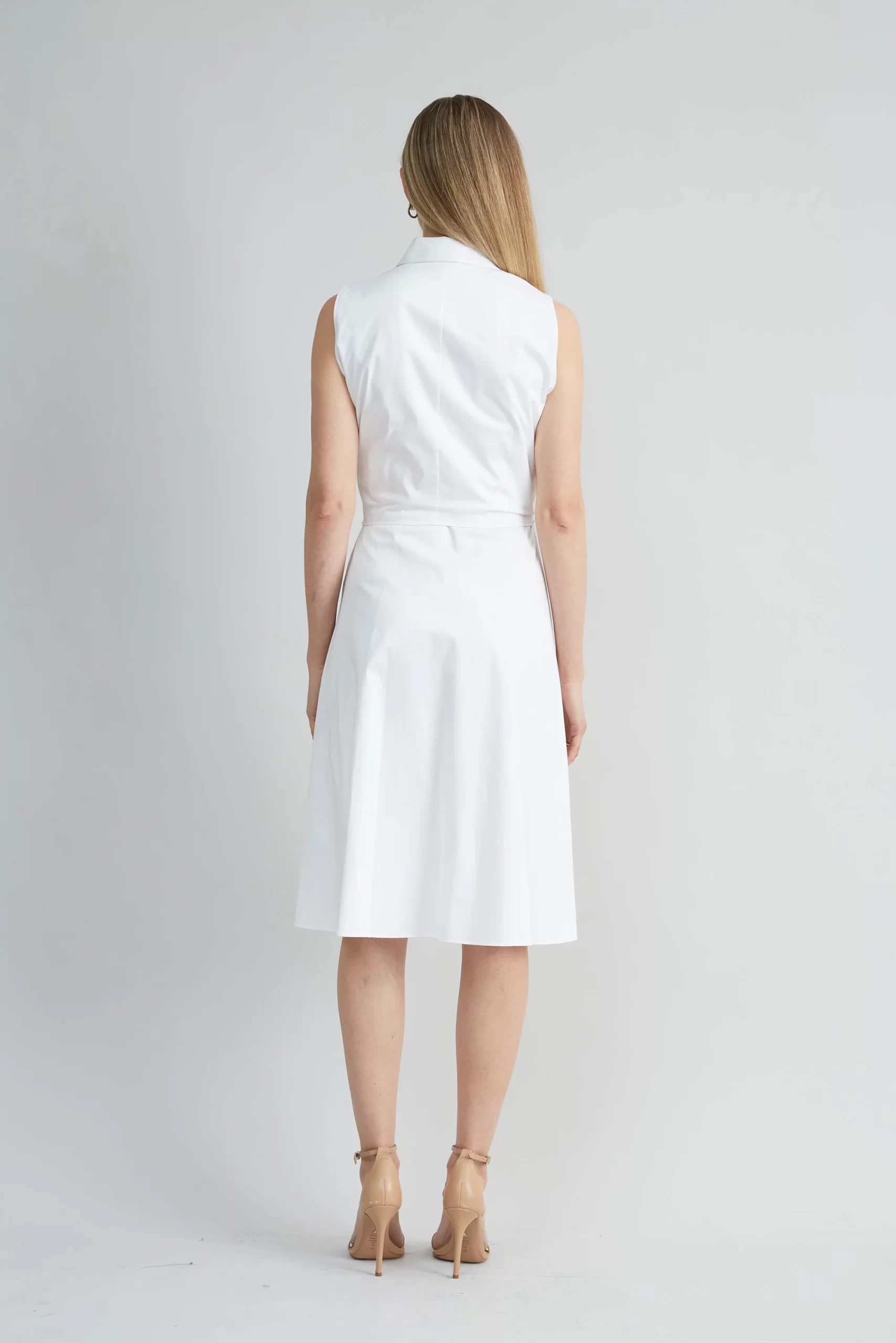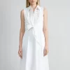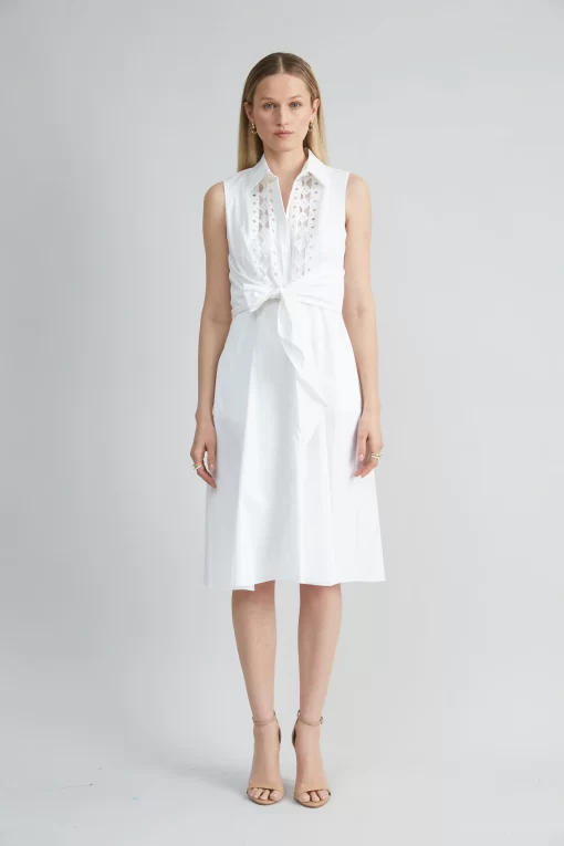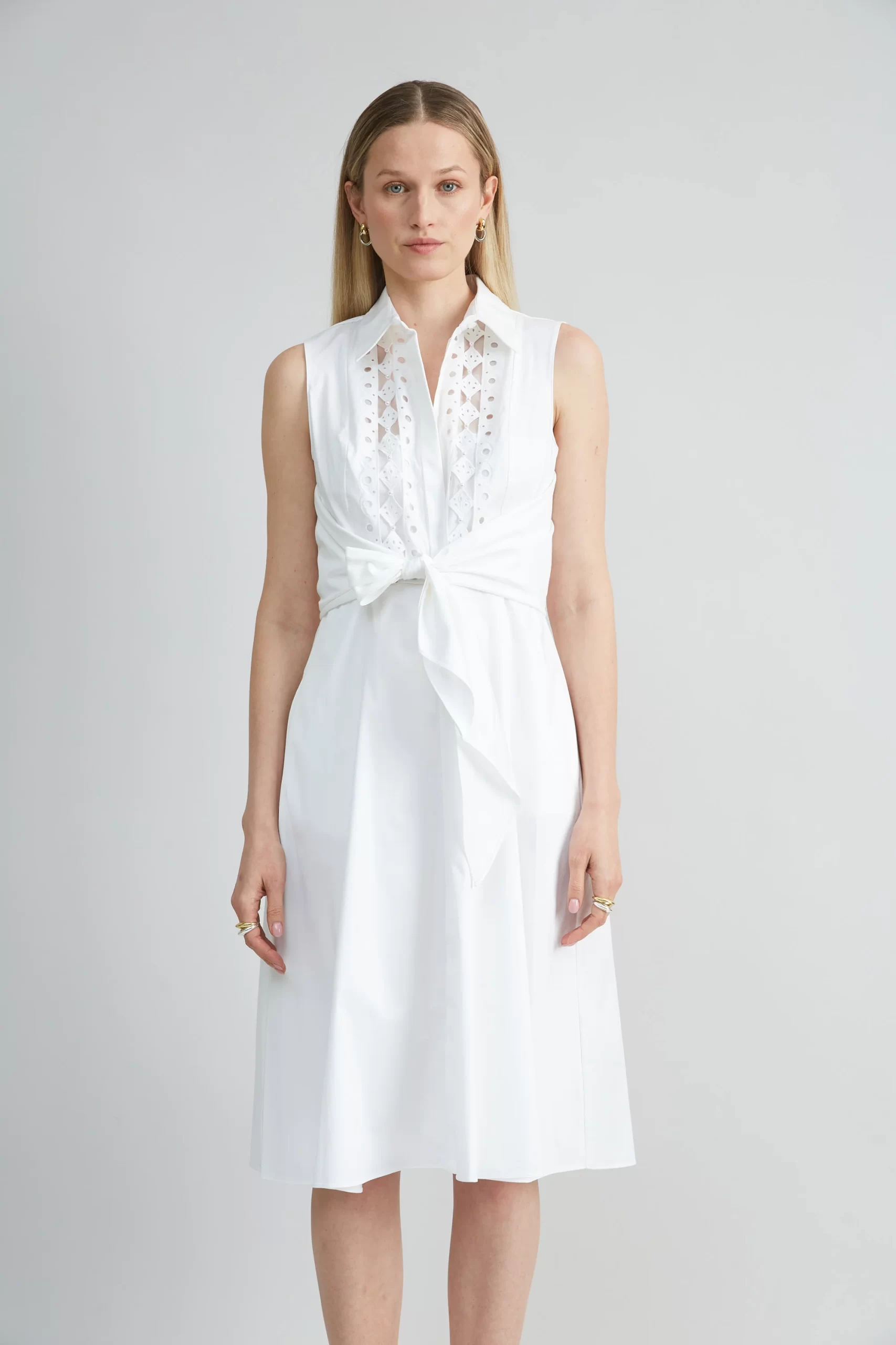 Sleeveless Tie Front Midi A-Line Dress with metal bodice detail, designed in Cotton Poplin