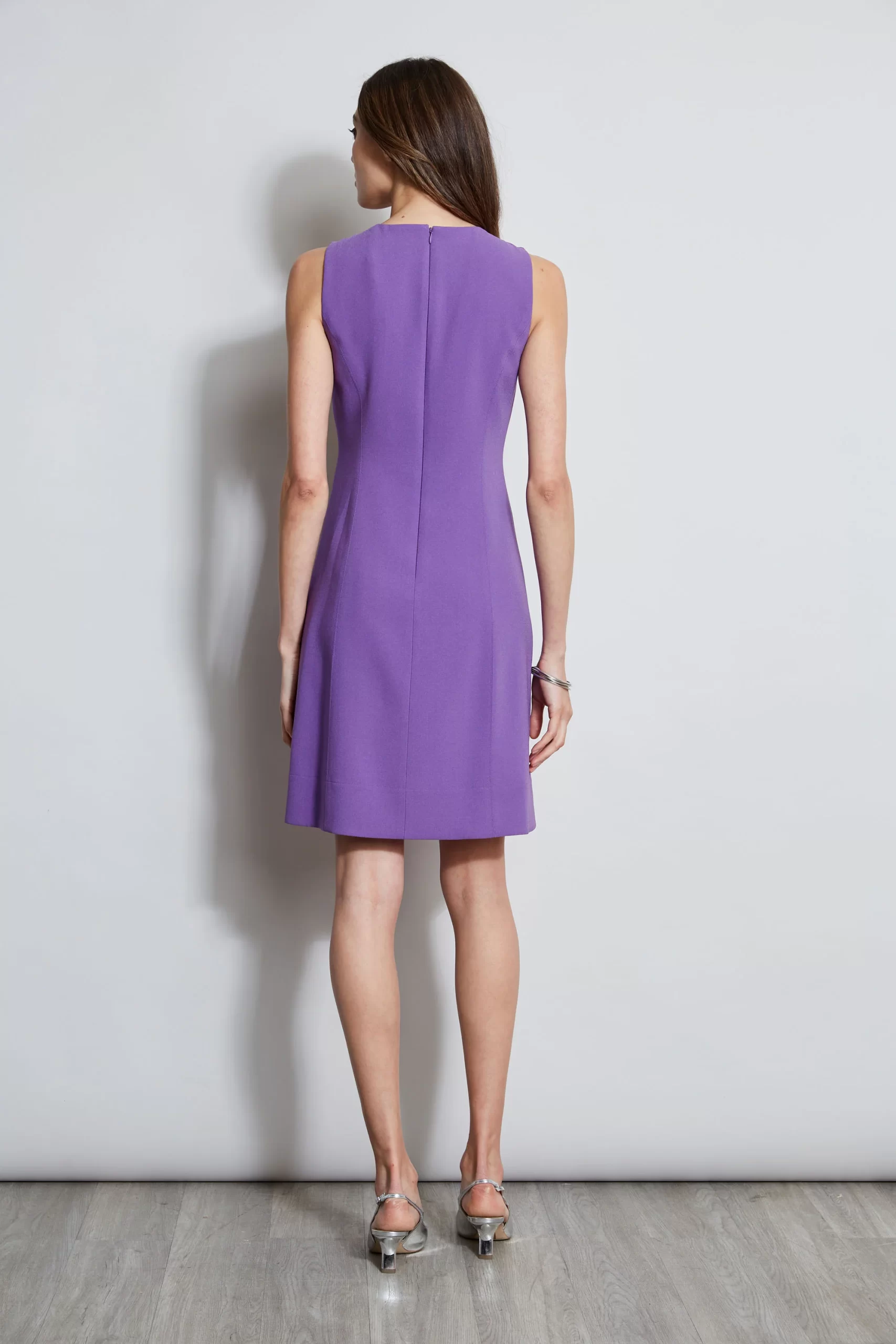 Modern architecture was the inspiration for this sleek fit & flare dress in Elie’s favorite Crepe. The keyhole cut-out showcases a modern Italian sculpted ring and the dress’s contour seaming give it a design edge – whether for day or a night out.