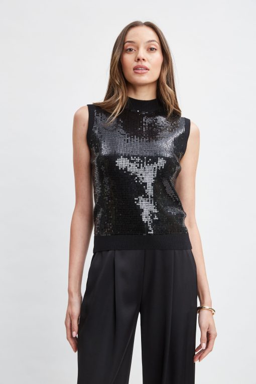 Exclusively ours. The Classic-Fit Mock Neck Sweater is reimagined with sequin embellishment. Make a statement in something that makes you feel your best. This sleeveless merino wool sweater exudes glamour.