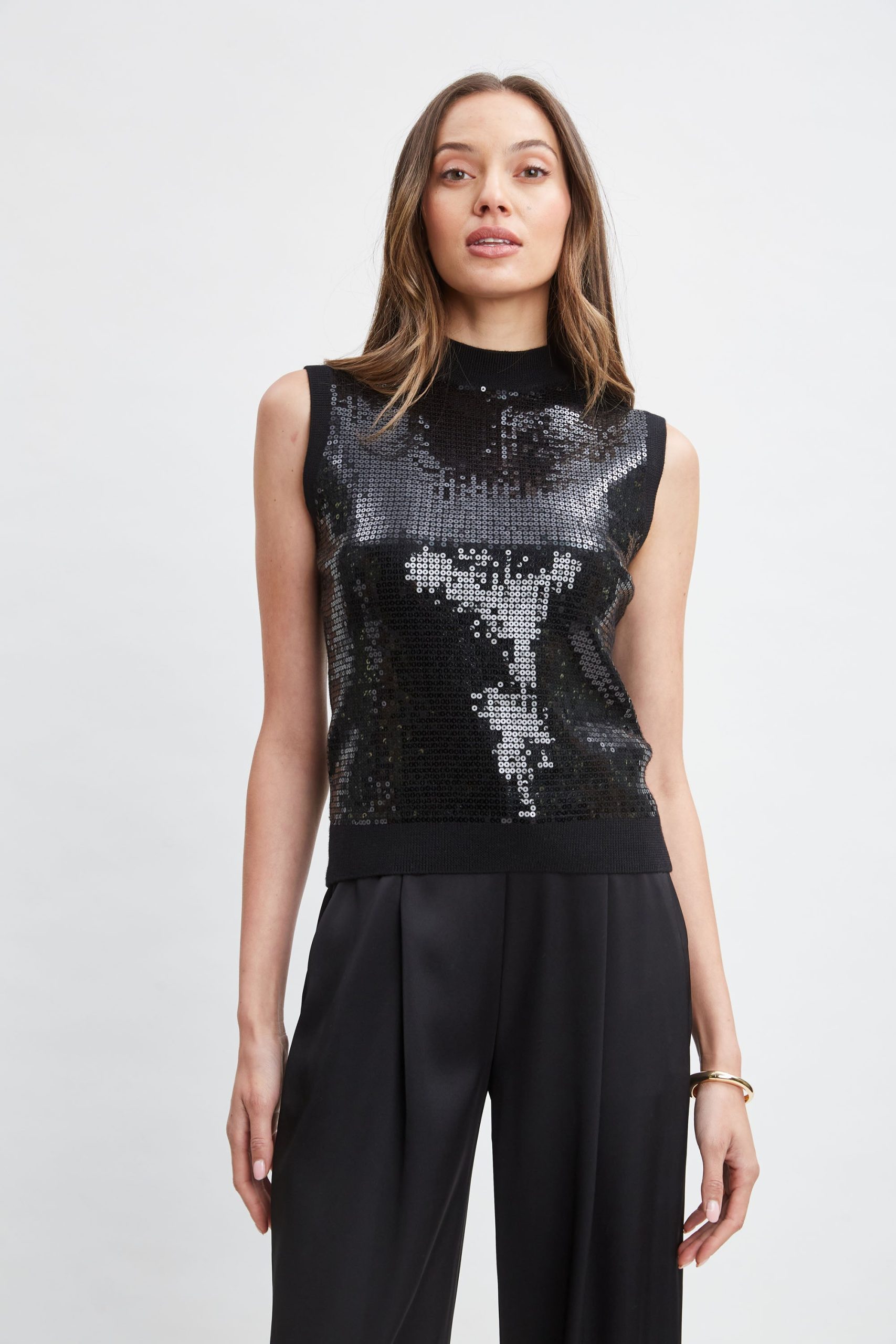 Sleeveless Sequin Front Wool Sweater
